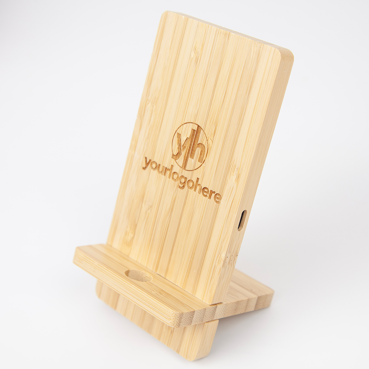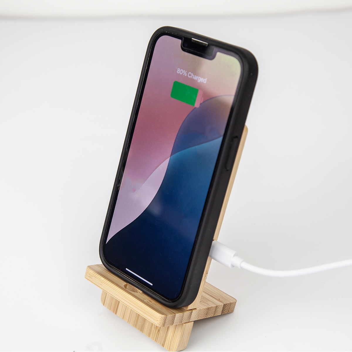 Made from Bamboo, this Wireless Charging stand is a great way to charge your phone whilst keeping it in an optimal position, perfect for a desktop charger.