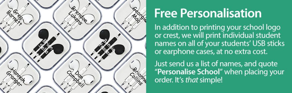 Not only will we print and personalise your USB sticks or tech gifts available from stock here in the UK, simply share pupil names and addresses with us (safely - ask us for GDPR friendly ways to send data to us!) and we will post these out for you for a small fee, saving the cost and hassle of distributing the gifts.