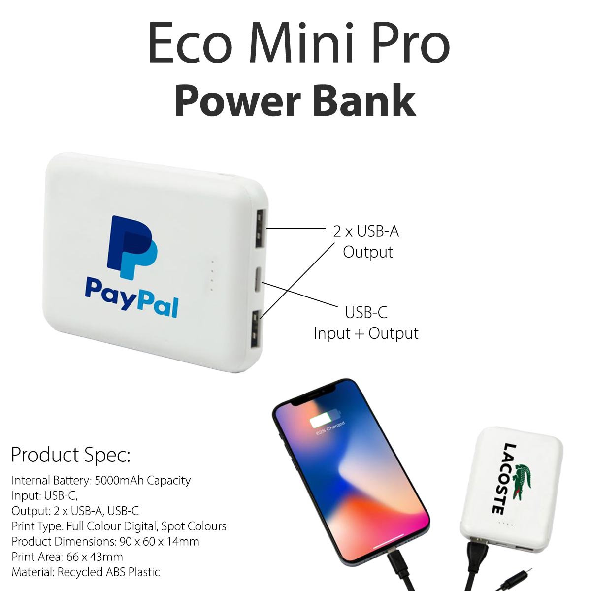 Click here to download the Artwork Guidelines for this product: Eco Mini Pro 5000 Power Bank