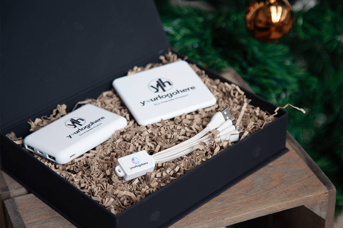 The Eco Slim XL Gift Set is the perfect blend of technology and sustainability in a corporate gift set. An ideal choice for any business looking to gift environmentally friendly tech solutions branded with their company logo.