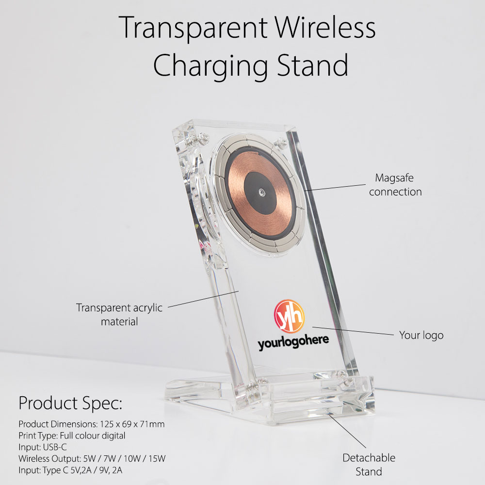 Charge your phone wirelessly with the Transparent Wireless Charging Stand. Not only does this Wireless Charger boast 15W fast charging, but it also looks great as a display piece!