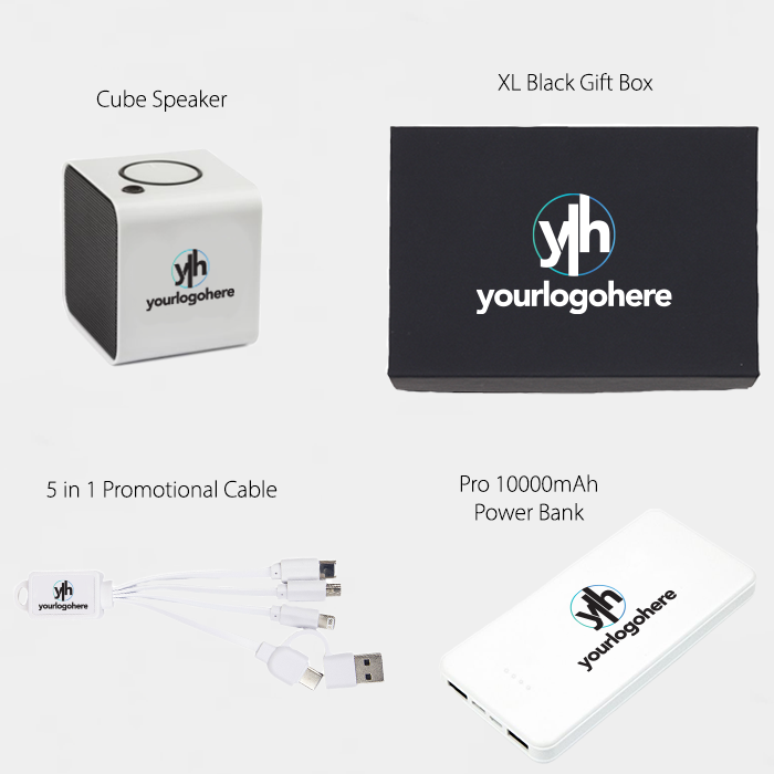 The Ultimate XL Gift Set is an impressive corporate gift set for businesses wanting to give a gift that won't be forgotten. Featuring the all new XL Black Gift Box branded with a company logo to the lid, this set is filled with three of our premium, best-selling tech gifts. Sitting inside custom cut high density foam, the chosen tech gifts are securely set in place. Perfect for carrying home from events and conferences!